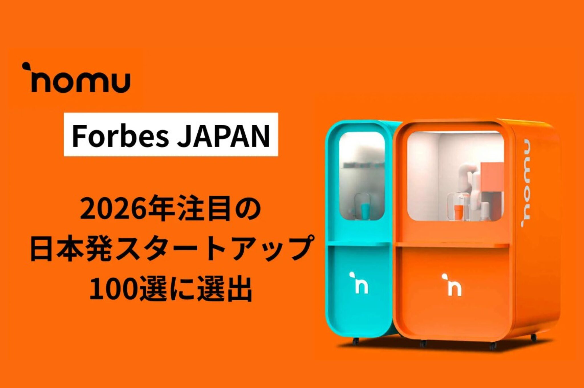 パーソナライズされた世界初※1のドリンク体験を提供するNOMU ENTERPRISE合同会社(本社:東京都渋谷区、代表社員:森國麦、以下「当社」)は、Forbes JAPANが2026年1月号で発表した「2026年注目の日本発スタートアップ100選」に選出されました。